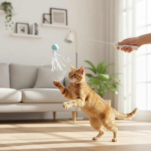 Offrez à votre compagnon des heures de divertissement avec ce jouet baguette interactif. Équipée d’accessoires interchangeables (plumes colorées ou rubans scintillants), cette baguette stimule l’instinct naturel de chasse de votre chat.